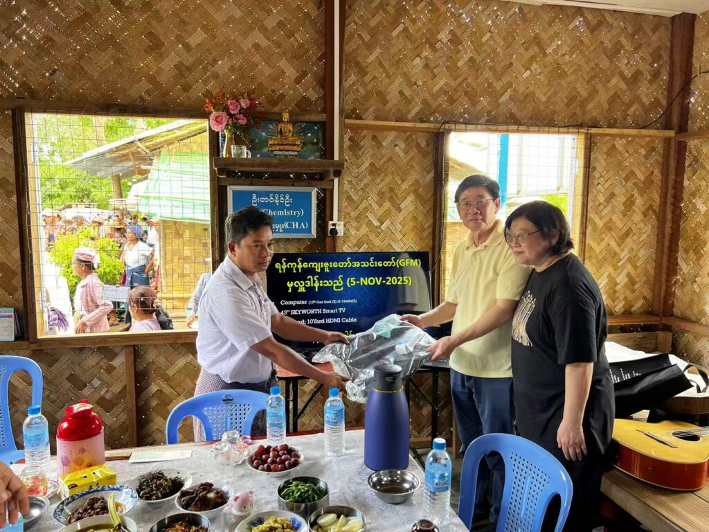 On November 5, 2025, Pastor Zhu and Evangelist Ming took three brothers and sisters to the disaster area. They visited villagers in the disaster-stricken areas of Tatkon and Nay Pyi Taw. A total of 415 households benefited. Each household received gifts including: 15 kg of rice; 1.5 kg of oil; salt; 1.5 kg of soybeans; 1.5 kg of onions; 2 cans of fish; MSG; and 5 packs of instant noodles. All were practical daily necessities.